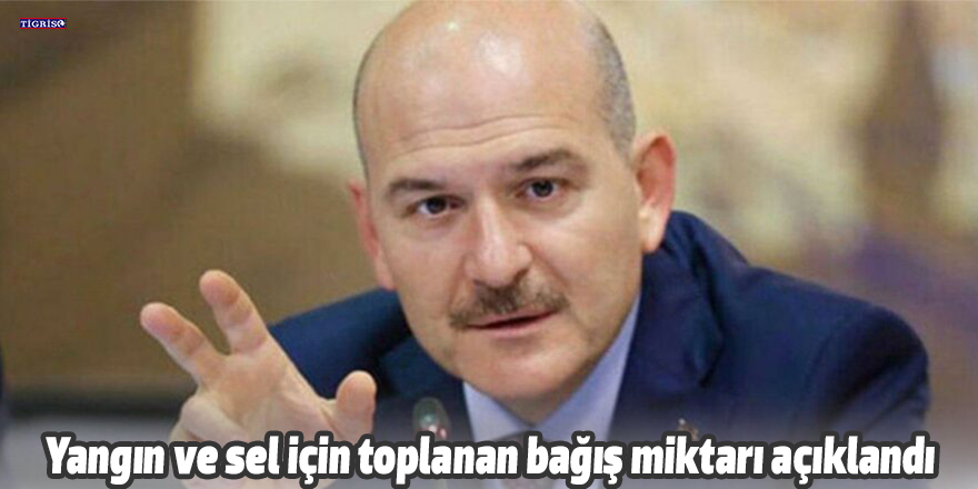 İçişleri Bakanı Süleyman Soylu, yangın ve sellerden etkilenen bölgeler için düzenlenen bağış kampanyasında toplanan bağış miktarını açıkladı. Soylu toplanan tutarın 131.049.316,75 TL olduğunu bildirdi.