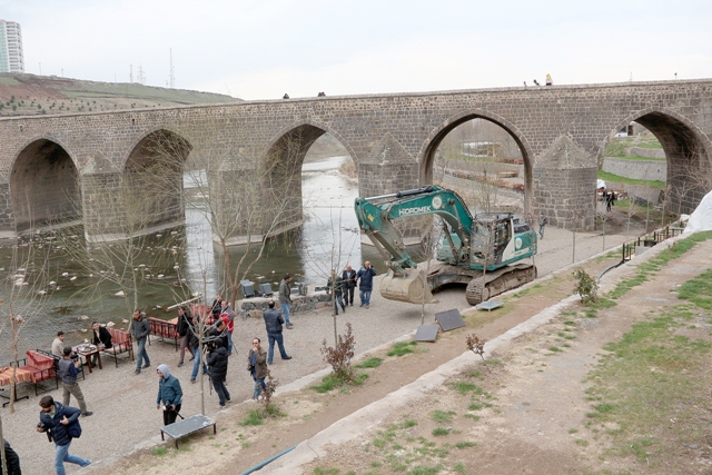 Yaklaşık 20 yıldır On gözlü köprü yanında cafe işletmeciliği yaptığını söyleyen Yüksel Mehmetoğlu, “1990’lı yıllarda köprünün gözleri kapalıydı. Bildiğiniz gibi daha önce köprü araç trafiğine açıktı. Daha sonra yeni köprü yapıldıktan sonra araç trafiğine kapatıldı ve müzeye dönüştürülmesi çalışmaları başlatıldı. Hatta o dönem babam da Kültür Varlıkları Koruma Müdürlüğüne dilekçe ile başvurarak destek verdi. Şimdi bu görmüş olduğunuz Dicle Nehri’de, Ongözlü köprüde hepimizin ortak değeridir. Gelin hep birlikte tarihimize ve suyumuza sahip çıkalım. Evet burada bir yanlışlık yapıldı ama gelin bunu hep birlikte düzeltelim. Biz hafriyat ve moloz dökmedik ve dolgu yapmadık. Sadece çamur olmasın diye çakıl döktük. Tek suçumuz bu. Bu görüntü hepimizi üzüyor” dedi.