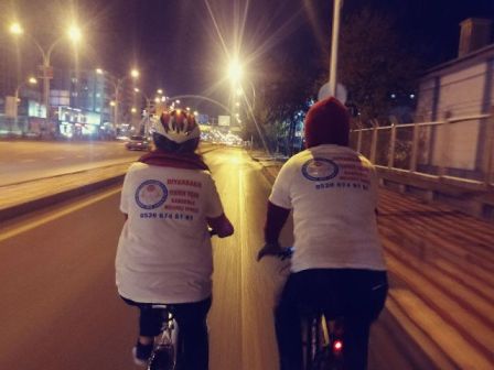 Tigris Bisiklet Spor Kulübü Üyeleri, Diyarbakır Yeniden Yaşam Kanserle Mücadele Derneğinin Kanserle mücadelesine destek ve dayanışma amaçlı olarak armalı tişört giyerek şehir turu attı.