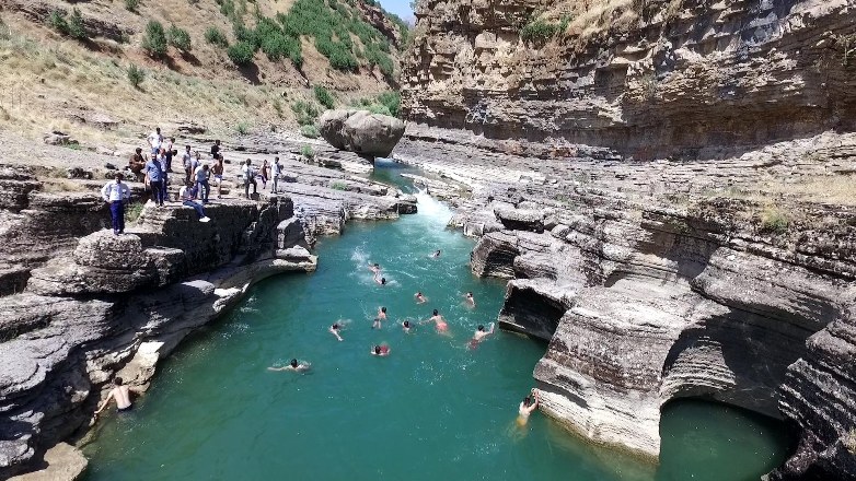 ŞIRNAK'ın Beytüşşebap ilçesi yakınlarındaki, yıllarca terör olaylarında adı duyulan Kato Dağı bölgesinde sürdürülen operasyonlar sonucu, huzur ve güvenin sağlanmasının ardından gençler, Faraşin Yaylası'ndaki Yeşilöz Deresi'nde yüzüp serinlemenin keyfini yaşadı.
