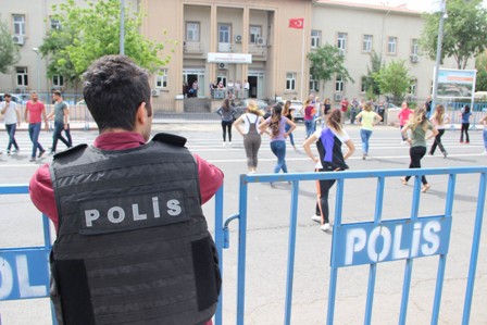 Bariyerlerle kapatılan valilik binası önüne zırhlı araçlar konuşlandırılırken, polis provanın yapıldığı alana girenleri üst aramasından geçirdi.