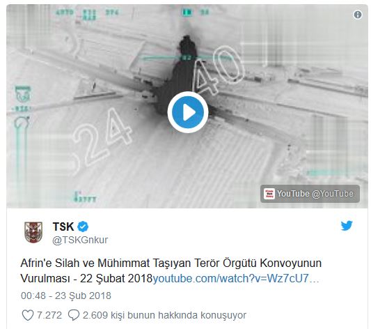 Bu sabah ise TSK'nın twitter hesabından video doğrudan yüklenerek paylaşmıştı.